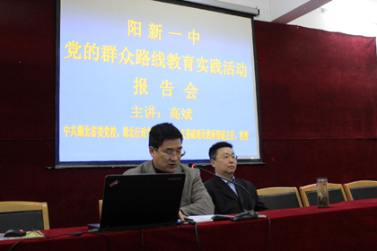 邀請高斌教授作專題學習報告是陽新一中扎實推進黨的群眾路線教育實踐活動的重要舉措。此前,陽新一中專題召開了黨的群眾路線教育實踐活動動員大會和陽新一中老教師征求意見座談會。(劉杰)