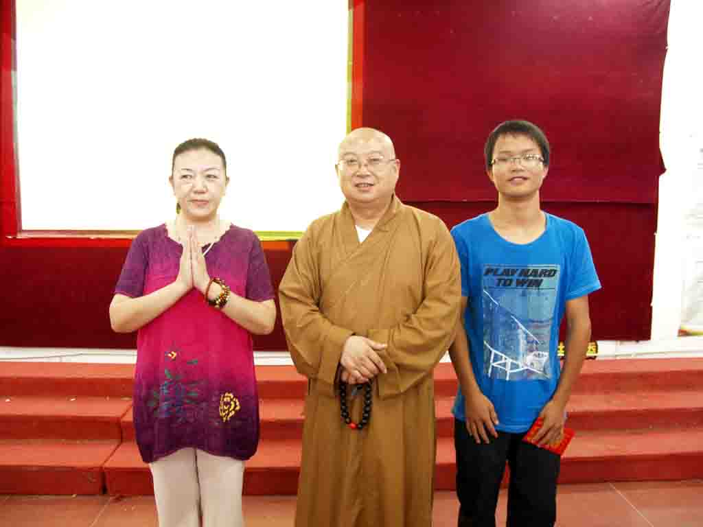 陽(yáng)新一中校長(zhǎng)、黨總支副書(shū)記明道樹(shù)致歡迎詞 捐資人受助學(xué)生一起和正慈方丈合影 高二(9)班慈云班學(xué)生大合唱《感恩的心》