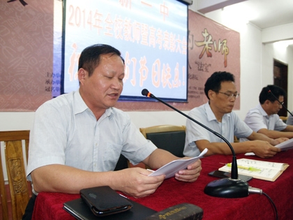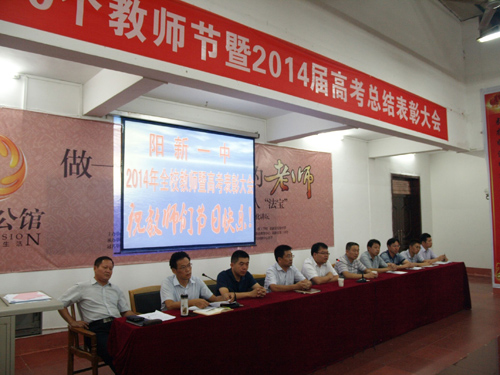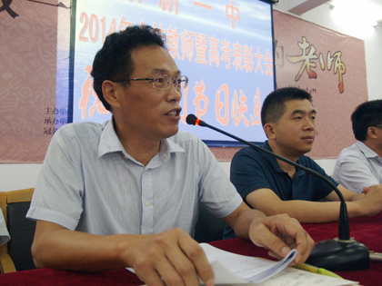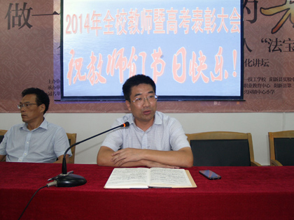 副校長(zhǎng)潘龍星宣讀了2014屆高考總結(jié)表彰的文件。在2014屆高考備考(中考)中許多優(yōu)秀班主任、優(yōu)秀備課組長(zhǎng)、優(yōu)秀班集體、優(yōu)秀備考教師等受到大會(huì)隆重表彰。此次表彰學(xué)校加大了的力度,受到表彰的教師和集體倍受鼓舞,正積極備考和拼搏的教師和集體也倍感振奮。在大會(huì)發(fā)言中,優(yōu)秀班主任代表