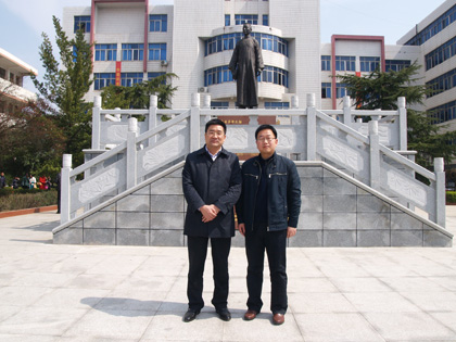 與會教師在陽新一中石瑛廣場合影 陽新一中校長明道樹(中間)與來訪領(lǐng)導(dǎo)合影 陽新一中校長明道樹(左一)與來訪領(lǐng)導(dǎo)合影 領(lǐng)導(dǎo)合影