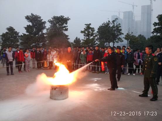 最后,在學(xué)校凌云廣場(chǎng)消防官兵現(xiàn)場(chǎng)指導(dǎo)學(xué)校部分師生和安全保衛(wèi)人員以及寢室公寓管理人員如何正確使用滅火器,并進(jìn)行滅油火進(jìn)行實(shí)物演習(xí)。
