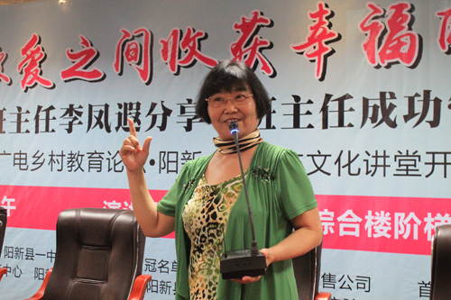 整個(gè)會(huì)場(chǎng)紀(jì)律良好,秩序井然,盡管好多老師沒(méi)有座位,但坐在地上、臺(tái)階上也一樣專心致志。兩個(gè)半小時(shí)的講座,很快就結(jié)束了,大家爭(zhēng)先恐后地上臺(tái)跟李老師合影,并留取聯(lián)系方式。上午11:40,李鳳遐老師在全場(chǎng)熱烈的歡送聲中離場(chǎng)。