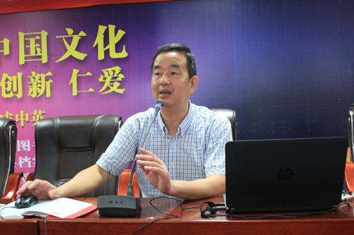8月19日,我校暑期教師培訓(xùn)進(jìn)入到第三輪。上午,我校綜合樓學(xué)術(shù)報(bào)告廳內(nèi)人滿為患。盡管天氣異常炎熱,卻依然擋不住老師們一睹大師風(fēng)采的熱情。江蘇省“五一勞動(dòng)獎(jiǎng)?wù)隆鲍@得者、江蘇省第一屆“十佳師德模范”、江蘇省歷史特級(jí)教師李鳳遐老師,正在為大家主講“班主任之愛(ài)與師生幸福”。