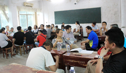 下午3點(diǎn),全校教師分為九個(gè)大組,在指定位置進(jìn)行長(zhǎng)達(dá)小組討論,討論中各小組又以年級(jí)為單位派代表發(fā)言,一時(shí)場(chǎng)面異常激烈。