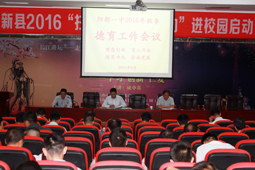 ——陽新一中召開2016年秋德育工作會議9月29日晚,陽新一中2016年秋德育工作會議在學(xué)術(shù)報告廳召開。會議同時簽訂了學(xué)校、年級、處室安全管理責(zé)任狀。全校中層以上干部、全體班主任、女工委全體成員參加會議,副校長、校黨總支委員柯美寶同志主持會議。
