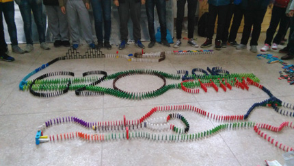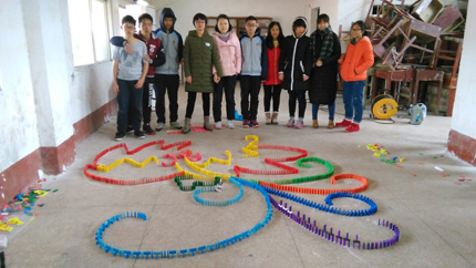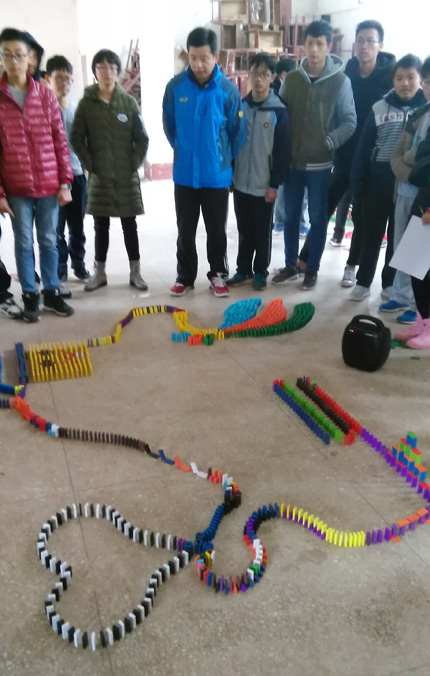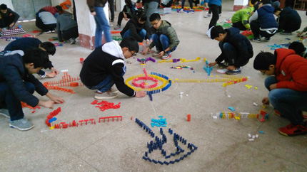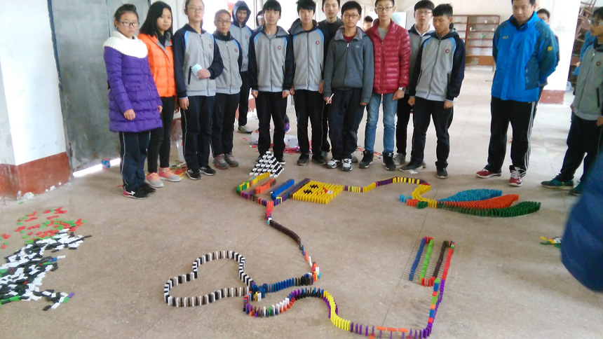 多米諾骨牌發(fā)源于中國,在歐美社會(huì)中則蔚為流行,是一種綜合德智體美勞的運(yùn)動(dòng),可以培養(yǎng)當(dāng)代中小學(xué)生的團(tuán)隊(duì)協(xié)作能力,考驗(yàn)學(xué)生體力、耐心、意志力和臨場(chǎng)應(yīng)變能力,提高學(xué)生的動(dòng)手能力。在第三屆體育科技文化藝術(shù)節(jié)中,我校再次將多米諾骨牌納入科技比賽項(xiàng)目內(nèi)容,11月20日(周日)晚上,柯賢根老師對(duì)每個(gè)年級(jí)選派的兩支隊(duì)伍進(jìn)行相關(guān)培訓(xùn)。正式比賽于11月24日上午9:30在新運(yùn)動(dòng)場(chǎng)看臺(tái)底下的體育室舉行,李永紅副校長到場(chǎng)觀看比賽情況。經(jīng)過緊張、激烈、漫長的比賽過程,評(píng)委從骨牌倒塌情況、圖案設(shè)計(jì)和寓意解說等幾個(gè)方面進(jìn)行打分,依據(jù)平均分高低依次決出第一名九年級(jí)(3)班、第二名高一(21)班、第三名高二(11)班,第四名高一(22)班,第五名高二(10)班。
