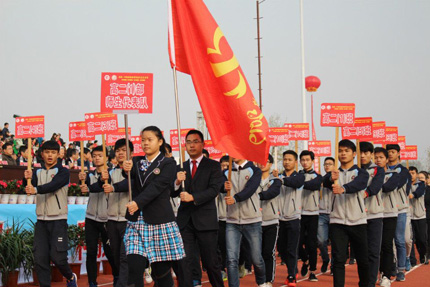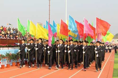 上午九點,我校新校區(qū)運動場內(nèi)鼓樂震天,彩旗飄揚,我校新、老校區(qū)全體師生匯聚在這里。九點十八分,隨著昂揚音樂節(jié)奏,入場式正式開始。我校校旗、會旗、級旗以及我校辦學理念都一一展示出來,各年級方陣,在學生代表的引領(lǐng)下,踩著音樂的節(jié)拍,展現(xiàn)了各自年級的風采,獲得學生、來賓及家長們的陣陣喝彩。