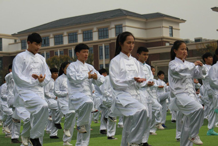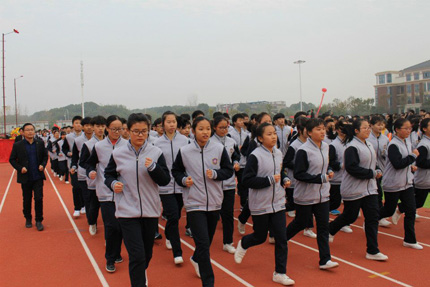 在我縣縣委常委、宣傳部長徐德世宣布“開幕”后,新、老校區(qū)高一、高二年級全體學生進行了跑操展示,新校區(qū)高一年級的學生進行了青春活力的團體操表演,老校區(qū)的學生進行了剛?cè)嵯酀珮O拳表演。