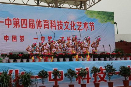 之后,開幕式師生文藝匯演正式拉開帷幕。本屆藝術(shù)節(jié)開幕式除去序曲《龍騰虎躍》,共有16個文藝節(jié)目。有高二(1)部大合唱《啟航》、校舞蹈社舞蹈《茉莉花開》、校團委教師朗誦《走進大一中》、高一(1)國學社經(jīng)典誦讀《少年中國說》、高一(2)舞蹈社舞蹈《花兒為什么這樣紅》、高一(3)戲曲社戲曲舞蹈《俏花旦》、高三年級教師舞蹈《彩蝶翩翩》、武漢紡織大學歌伴舞《絲綢之路》、校武術(shù)社武術(shù)表演《壯志凌云》以及校青少年科學院的科技制作成果展示等等。節(jié)目涵蓋面非常廣泛,合唱獨唱、舞蹈誦讀、科技展示、武術(shù)表演,應有盡有,美輪美奐。這既是一次體育、科技的大餐,又是一場文化、藝術(shù)的盛宴,更是我校全體師生智慧和才情全面展示。