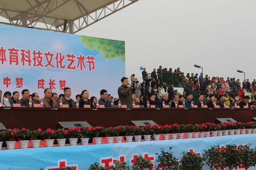 初冬時節(jié),天寒風冷,一中操場,熱情洋溢。11月22日上午9點,陽新一中第四屆體育科技文化藝術(shù)節(jié)在學校運動場隆重開幕。本屆藝術(shù)節(jié)以“中國夢·一中夢·成才夢”為主題。北京大學、清華大學、武漢大學、華中科技大學、華中農(nóng)業(yè)大學、武漢紡織大學、黃石市教育局、黃石市科協(xié)、黃石市科技館、縣四大家領(lǐng)導、黃石一中、黃石二中、黃石三中、黃石四中、黃石五中、黃石六中、黃石七中、有色中學等單位領(lǐng)導、專家出席開幕式。