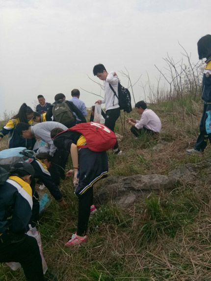 這是一次義務(wù)環(huán)保之旅。無論在山頂一覽眾山小,還是在山腳“舞臺乾坤大”,大家都隨手拾撿,留下一方凈土。