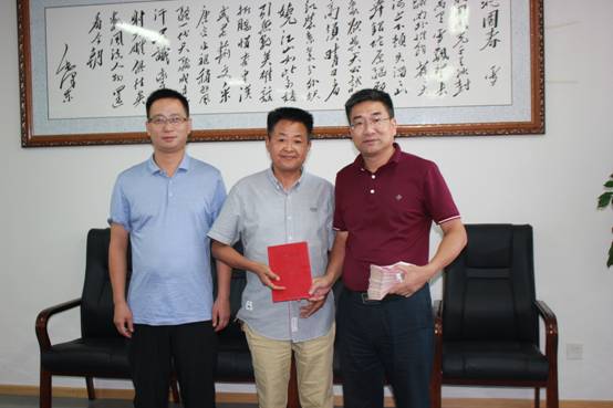 (左起陽新教育局局長馬哲強(qiáng)、愛心企業(yè)家徐德有、明道樹校長)