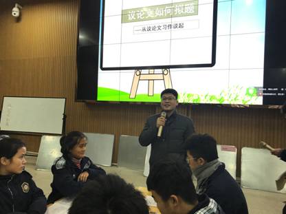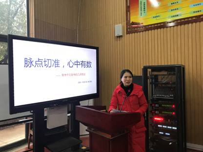 此次研討會分設研討課和主題報告兩個環(huán)節(jié)。研討課由陽新一中陳湖庚老師和黃石四中戚佳莉老師主講。陳老師從“如何擬題”的角度,結合自己的教學實際和學生的平時習作案例導入,循循善誘,深入淺出;戚老師從“如何切題”的角度,以上次黃石語文聯(lián)考作文題目為例,結合學生的考場作文案例導入,洞幽燭微,切中肯綮。