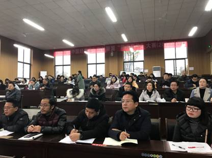 微雨冷風寒潮到,難擋研討熱情高。12月26日上午,黃石市2019屆高三語文作文教學研討會在陽新一中新校區(qū)明道樓報告廳舉行。上午8時,報告廳內已座無虛席。黃石市教科院高中語文教研員譚清才主任、大冶教研室高中語文教研員劉碧玲老師、陽新教研室高中語文教研員王敏老師及全市各高中帶隊領導和語文老師代表,陽新一中副校長梁師穩(wěn)、方長風、王能勇、李雁鳴及學校全體語文老師參加了研討會。研討會由市教科院譚清才主任主持,陽新一中方長風副校長致詞。