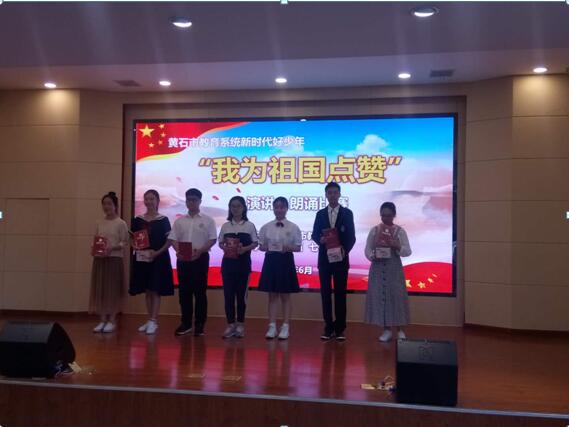 2019年6月14日上午,在黃石七中夏荷廳,由黃石市教育局主辦,黃石七中承辦的市教育系統(tǒng)新時代好少年“我為祖國點贊”演講、朗誦比賽中,我校選手高二(27)班尹夢婷榮獲高中組演講比賽三等獎,高一(25)班尹美星榮獲高中組朗誦比賽二等獎。