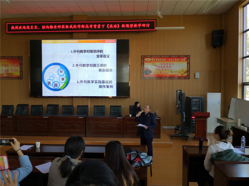 2019年11月22日(星期五)下午14:30在新校區(qū)明道樓,我校教科室組織舉辦了主題為“新高考背景下《英語(yǔ)》新題型教學(xué)”的專(zhuān)家培訓(xùn)報(bào)告。陽(yáng)新一中李雁鳴書(shū)記、新老校區(qū)全體英語(yǔ)教師、縣教科院教研員趙慧娟老師和縣兄弟學(xué)校部分英語(yǔ)教師聆聽(tīng)了本次報(bào)告。