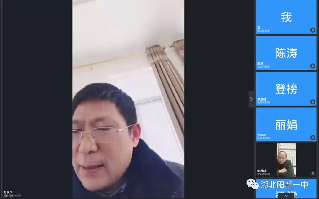 ??? 17日下午,為了進(jìn)一步落實(shí)教育部“停教不停學(xué)”精神,陽新一中召開“網(wǎng)上教學(xué)” 專題視頻推進(jìn)會。學(xué)校全體校委會領(lǐng)導(dǎo)、教師發(fā)展中心全體干部、各處室主任、各級部支部書記、主任參加推進(jìn)會。會議由副校長方長風(fēng)主持。