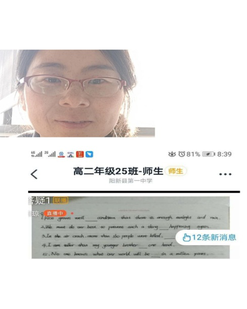 同學(xué)們,你們也不是孤軍作戰(zhàn)。為確保網(wǎng)學(xué)質(zhì)量不下降,你們父母做了大量事情,為他們耐心陪伴喝彩。隔山隔水難隔你我,班上老師一直同你們并肩作戰(zhàn)。早自習(xí)老師與你們一起晨讀,視頻直播課,老師陪你們聽(tīng),老師還要細(xì)心批改作業(yè),積極嘗試直播答疑。