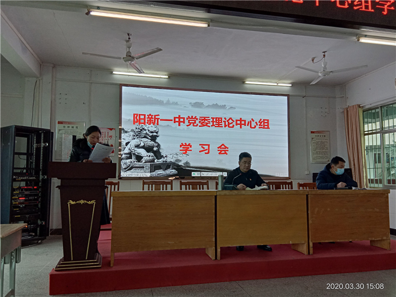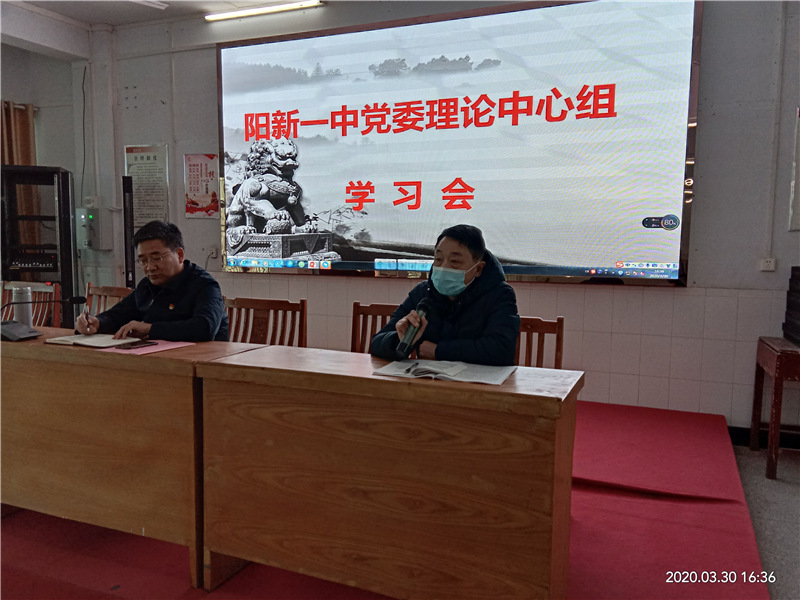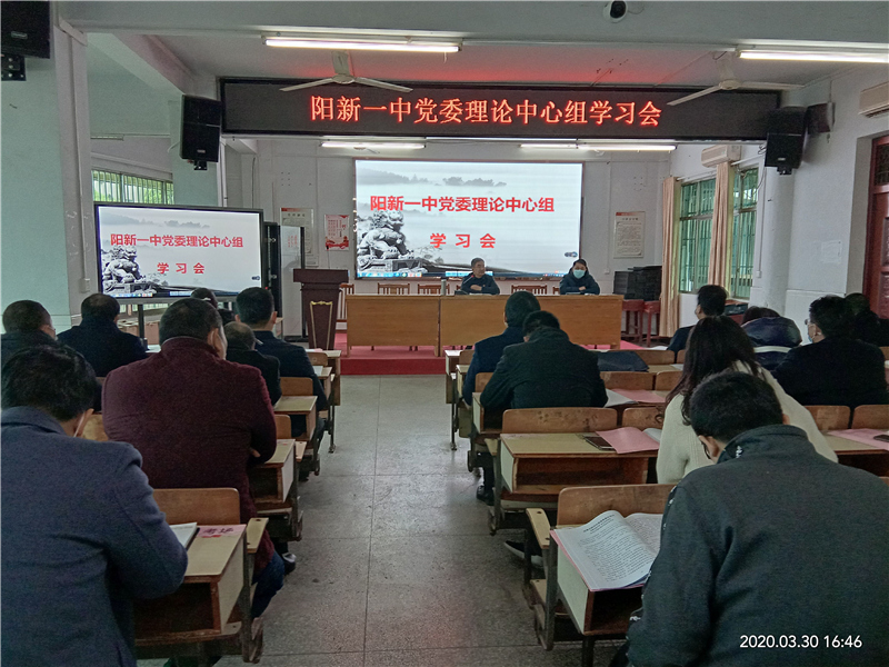 ? ? ? ? 3月30日,陽新一中召開黨委理論中心組學習交流會,傳達學習習近平總書記視察湖北重要講話精神。交流會由黨委副書記潘龍星主持。