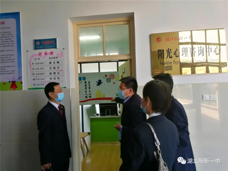 在黨委書記、校長明道樹的陪同下,尹義林檢察長先后參觀了我校和人民檢察院共建的模擬法庭、陽新一中三大講堂(道德講堂、法治講堂、黨建講堂)之一的法治講堂、心理咨詢室。在心理咨詢室,尹義林檢察長驚嘆于我校的心理咨詢工作開展以及取得的成績,饒有興趣地向明校長詢問各項細(xì)節(jié)工作情況?!斑@是我見過的最規(guī)范、最先進(jìn)、最吸引人的心理咨詢室”,尹義林檢察長對此給予高度評價,并表示檢察院下一步將要多跟陽新一中交流,在做好未成年人教育工作上實行資源共享。