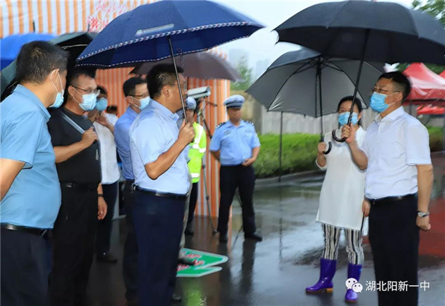 王書記現(xiàn)場了解安檢與體溫監(jiān)測程序、考點周邊環(huán)境秩序、考場布置、住宿條件、應(yīng)急措施落實、安保人員配備等服務(wù)保障工作。王書記強(qiáng)調(diào):今年的高考情況特殊,目前仍處于疫情常態(tài)化防控狀態(tài),加之陽新正處于強(qiáng)降雨期,對今年的高考保障工作是一個巨大的考驗。各部門要密切配合,千方百計做好高考的保駕護(hù)航工作,全力營造一個安全、公平、公正的考試環(huán)境,確保每一名考生都能平安、順利參加高考。