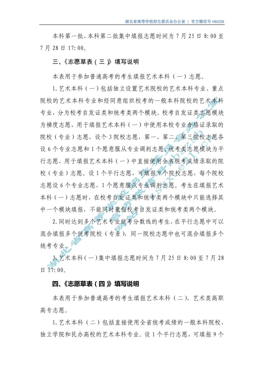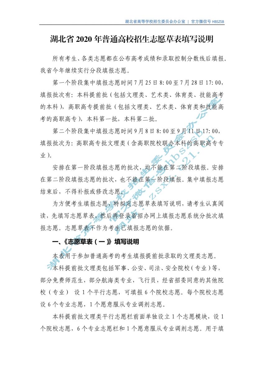 湖北省2020年普通高校招生志愿草表及填寫說明