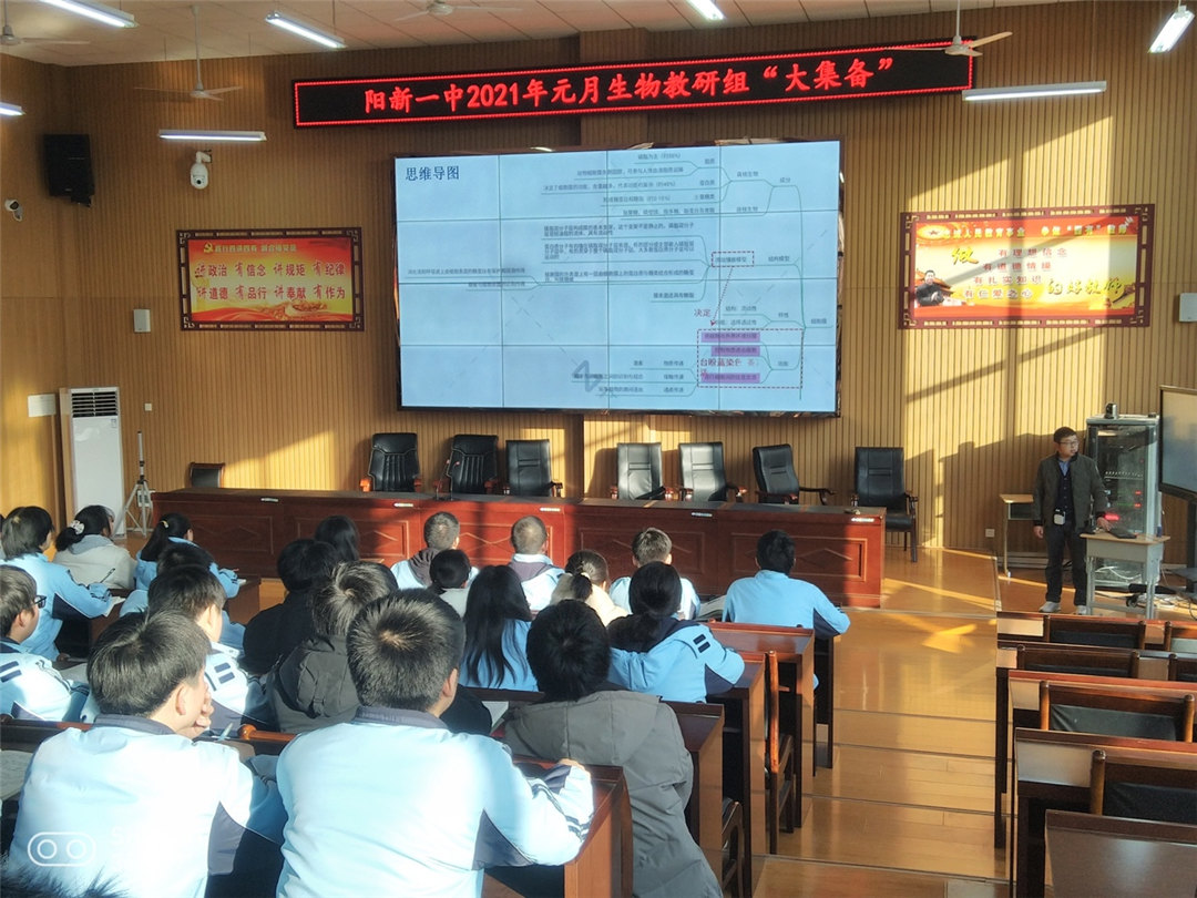 1月14日上午,為了進一步推進學科組集備集研,促進教師的專業(yè)成長,助力高三備考,陽新一中生物教研組在明道樓報告廳進行“大集備”。全體生物教師參加活動,蹲點校領導副校長徐宏斌參加活動并講話?;顒佑山萄薪M長盧忠典主持。