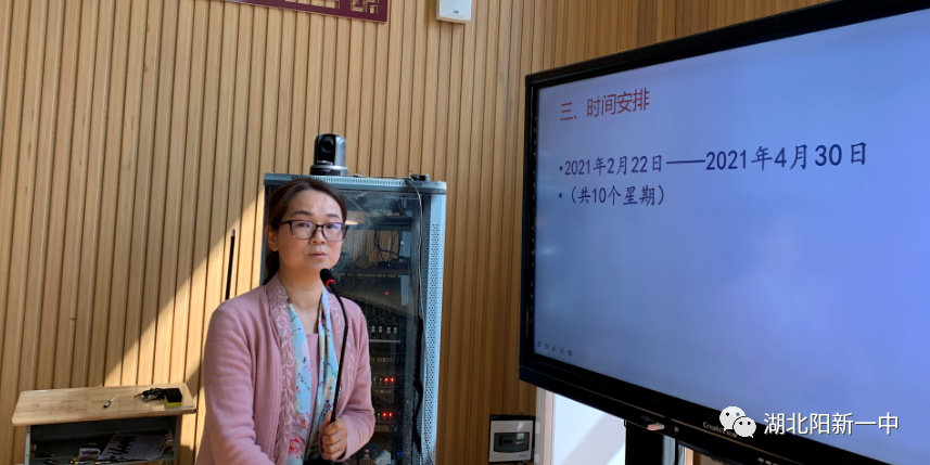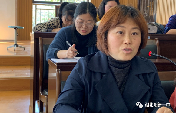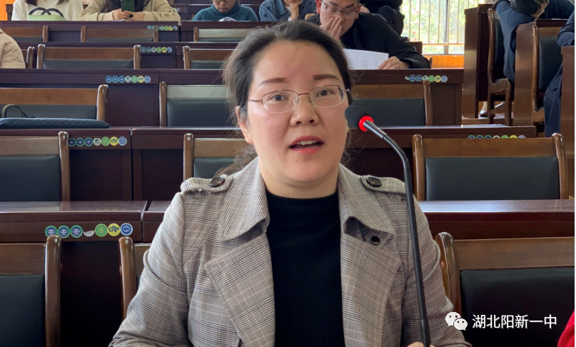 在匯報二輪復(fù)習(xí)計劃環(huán)節(jié),陽新一中高三語文備課組長章丹老師從“二輪復(fù)習(xí)計劃,近期復(fù)習(xí)安排,常規(guī)工作落實”三個方面匯報高三語文組二輪復(fù)習(xí)的計劃和安排,并強調(diào)高三語文組按周計劃,分工合作,時文閱讀,選題組卷等方面作出的努力。