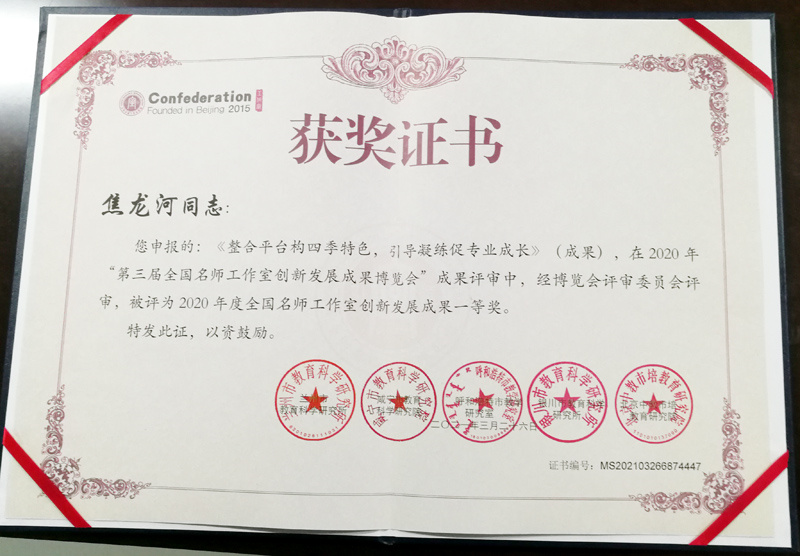 全國(guó)名師工作室創(chuàng)新發(fā)展成果 | 《整合平臺(tái)構(gòu)四季特色,引導(dǎo)凝練促專業(yè)成長(zhǎng)》 | 一等獎(jiǎng) | 焦龍河 |
