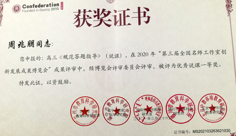 優(yōu)秀說課(視頻+教學(xué)設(shè)計(jì)文本) | 高三《規(guī)范答題指導(dǎo)》 | 一等獎(jiǎng) | 周兆朋(大冶一中) |