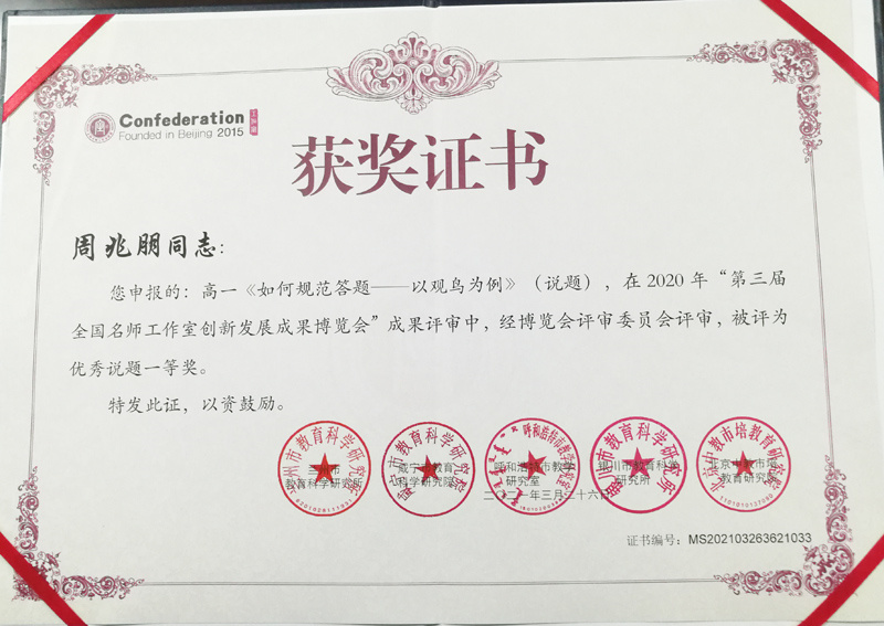 優(yōu)秀說題(視頻+教學(xué)設(shè)計(jì)文本) | 高一《如何規(guī)范答題——以觀鳥為例》 | 一等獎(jiǎng) | 周兆朋(大冶一中) |