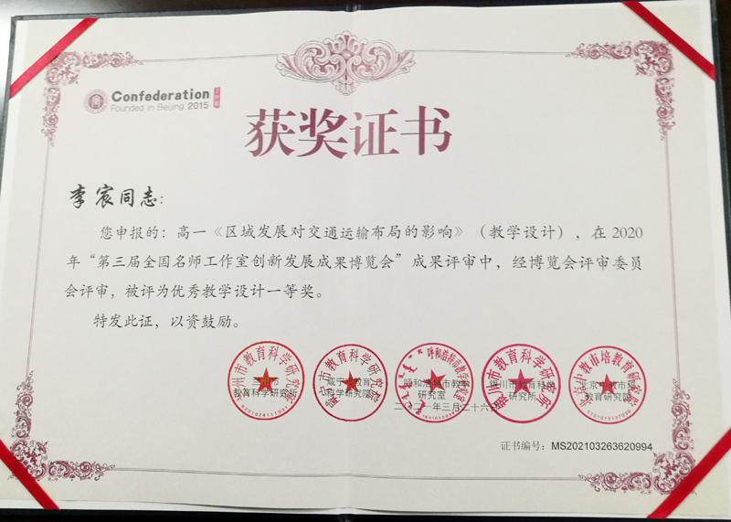 優(yōu)秀教學(xué)設(shè)計(jì) | 高一《區(qū)域發(fā)展對(duì)交通運(yùn)輸布局的影響》 | 一等獎(jiǎng) | 李宸(陽新一中) |