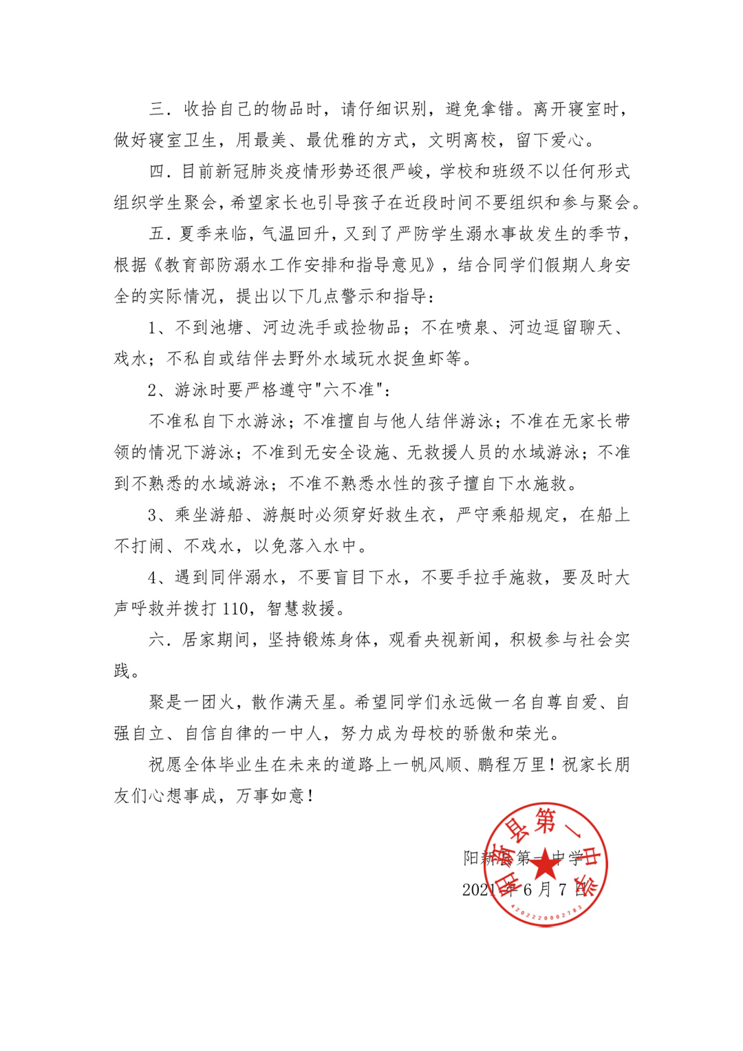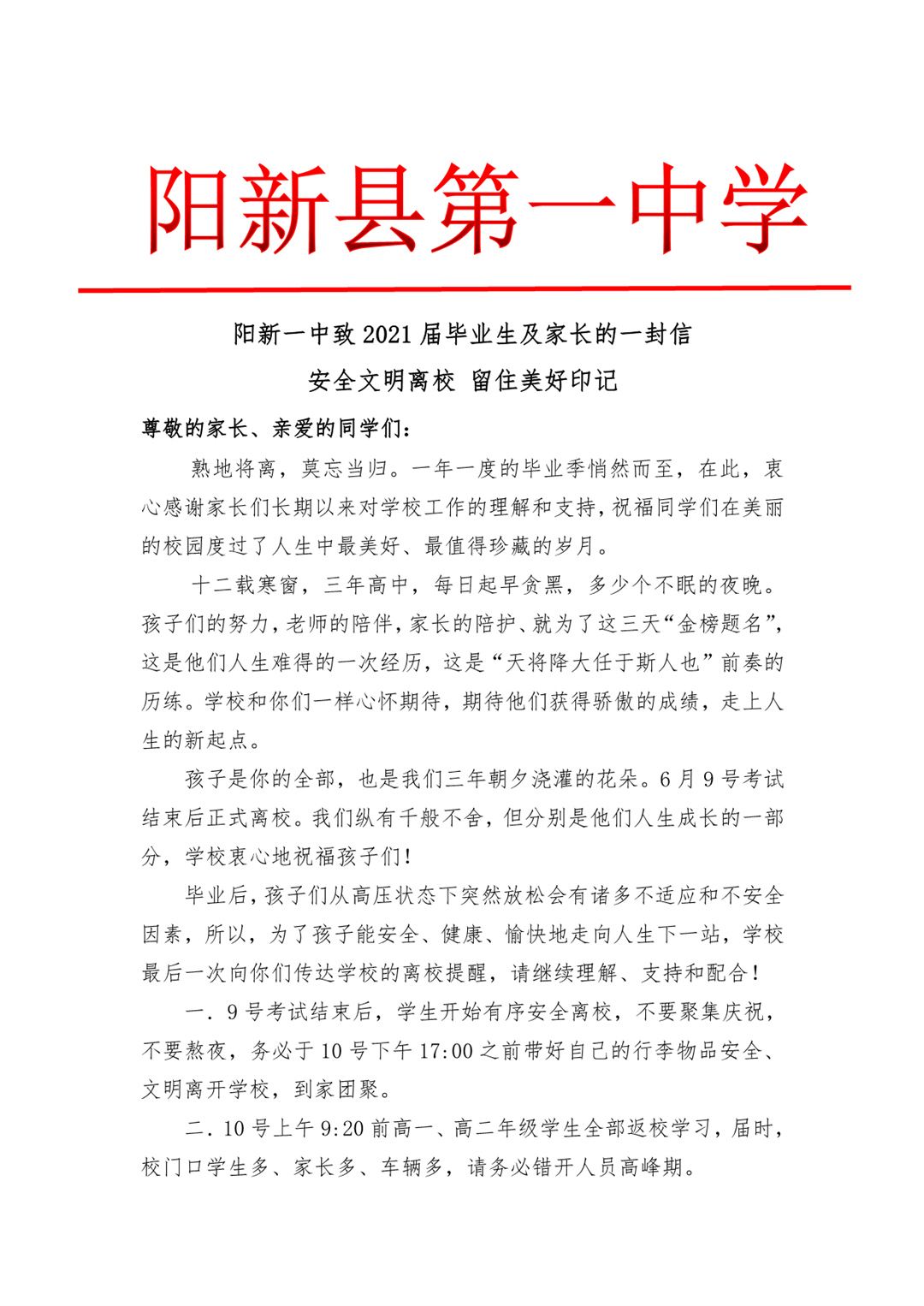 陽新一中致2021屆畢業(yè)生及家長的一封信|安全文明離校 留住美好印記