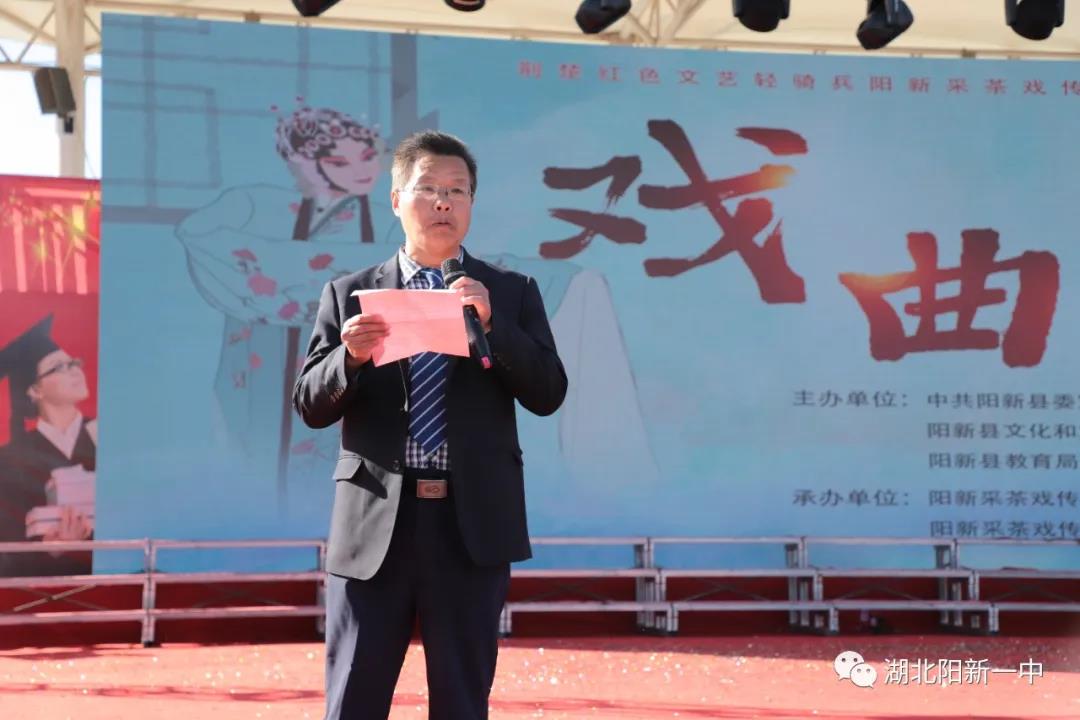 感受戲曲韻味,傳承經(jīng)典文化。11月24日下午,由縣委宣傳部、縣文旅局、縣教育局主辦,縣采茶戲傳承中心承辦的“戲曲進校園”活動在陽新一中運動場舉行,縣文旅局局長胡文省,陽新一中黨委書記、校長明道樹,陽新一中校領(lǐng)導(dǎo)潘龍星、徐宏斌、李雁鳴出席活動,陽新一中高一、高二年級全體學(xué)生觀看演出?;顒佑申栃乱恢懈毙iL徐宏斌主持。