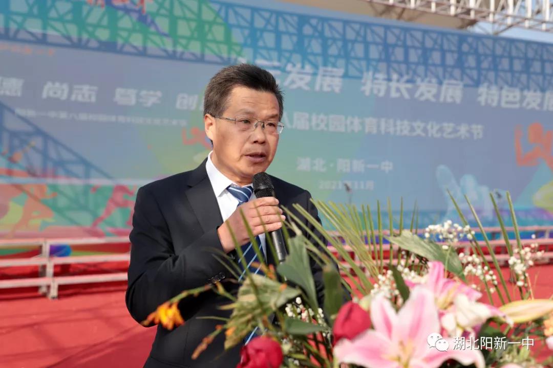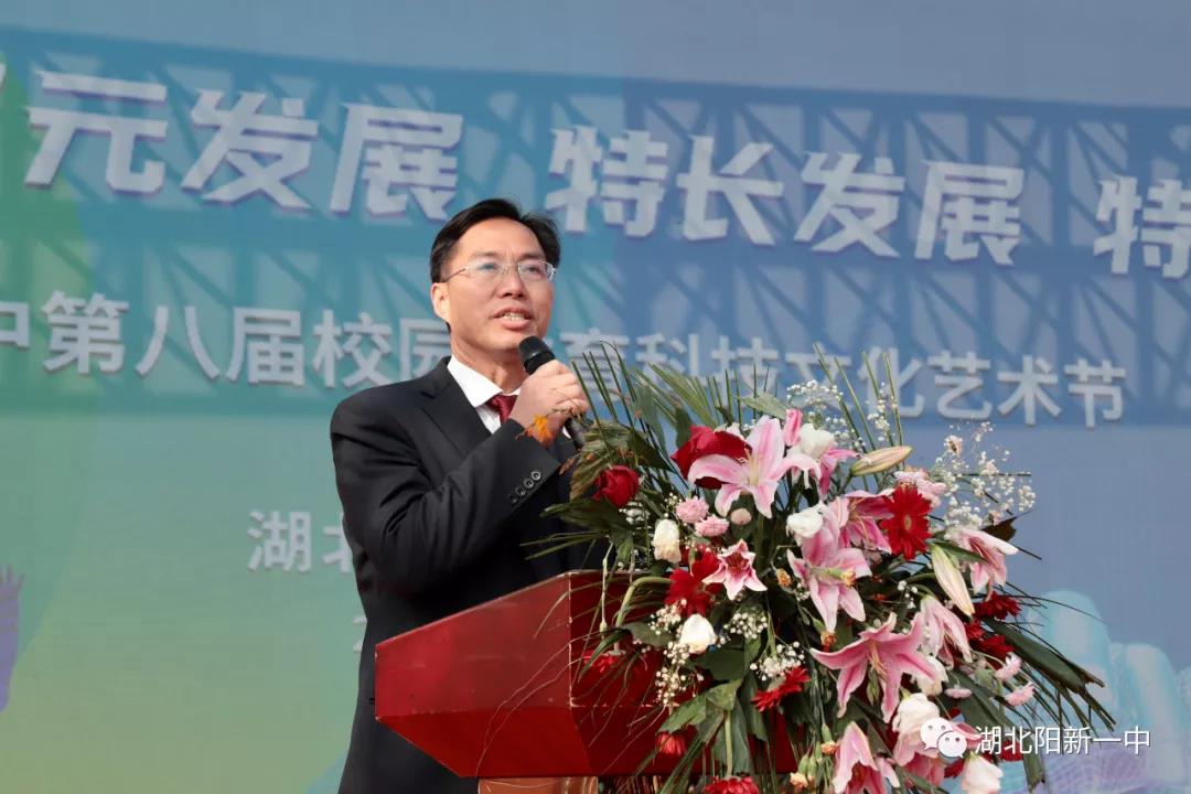 縣委宣傳部副部長張召龍宣布陽新一中第八屆體育科技文化藝術(shù)節(jié)閉幕。