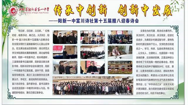 2022年1月8日,“陽新一中·富川詩社臘八迎春詩會”創(chuàng)新形式,走出校園,走進(jìn)三溪鎮(zhèn)沁心園,陽新一中教師與陽新縣詩詞學(xué)會的詩人們以原創(chuàng)作品共同打造出了“沁心園詩廊”。