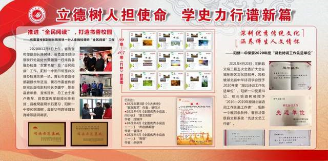 深耕優(yōu)秀傳統(tǒng)文化,涵養(yǎng)師生人文情懷,陽新一中結(jié)碩果。2020年,陽新一中被授予“中華詩教先進(jìn)單位”,榮獲“湖北省詩詞工作先進(jìn)單位”。湖北省特級教師、陽新一中黨委書記、校長明道樹被授予“2016——2020年度湖北省詩詞先進(jìn)工作者”。