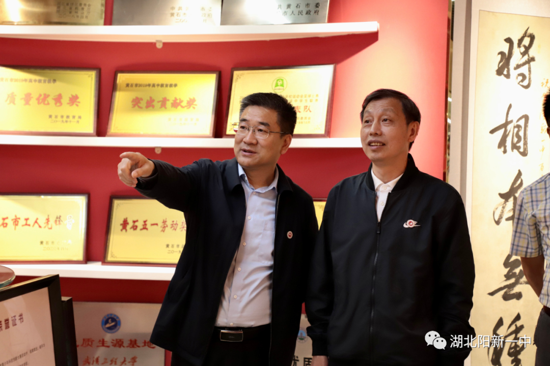 5月23日上午,我校知名校友、中國駐科威特原大使李名剛先生回到母??赐麕熒?。陽新一中黨委書記、校長明道樹及全體校委會成員熱情接待李名剛先生,并陪同參觀校園。