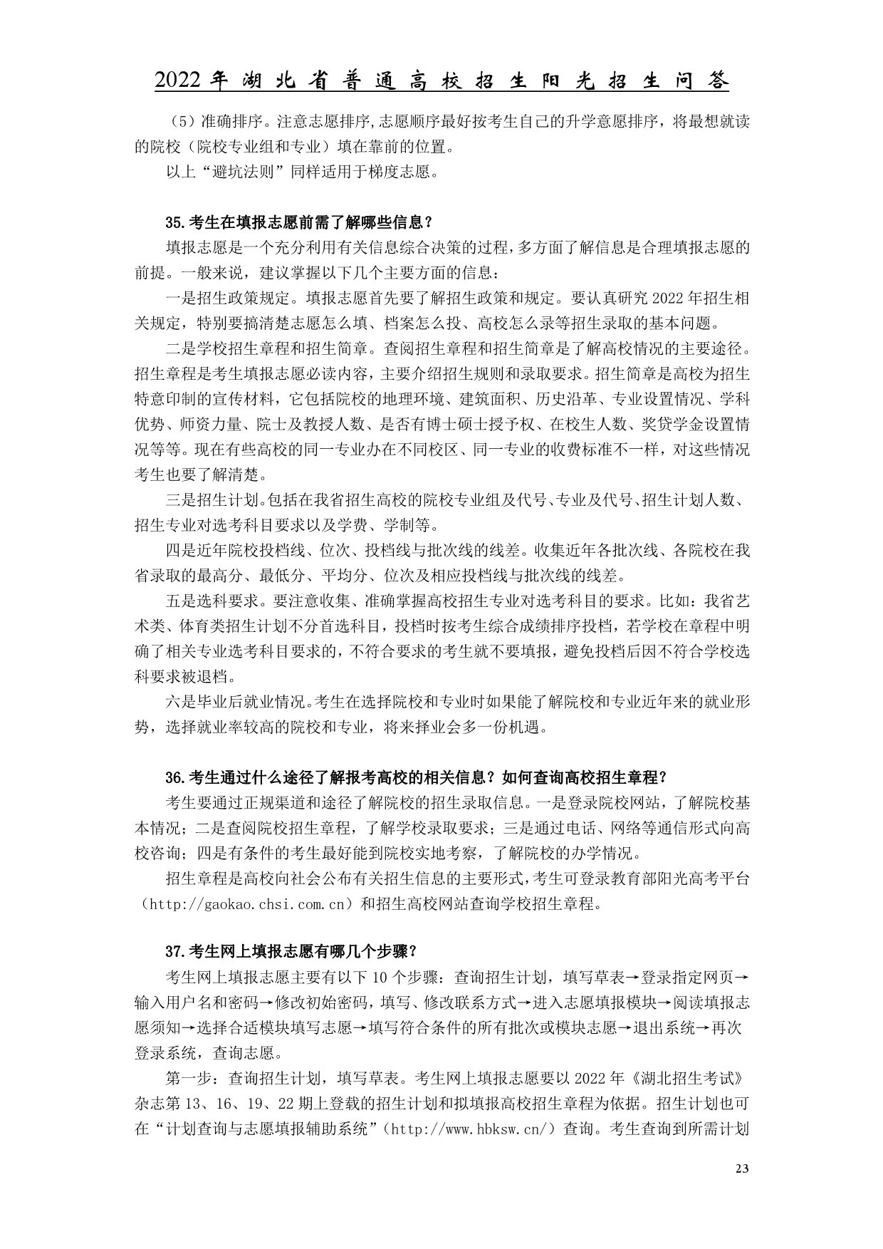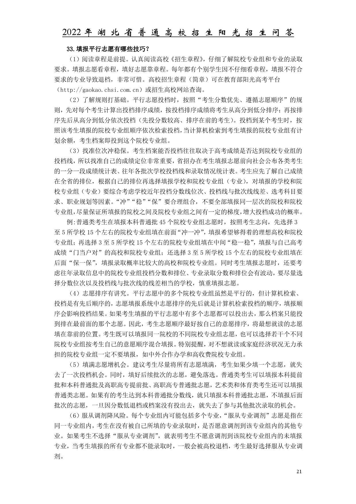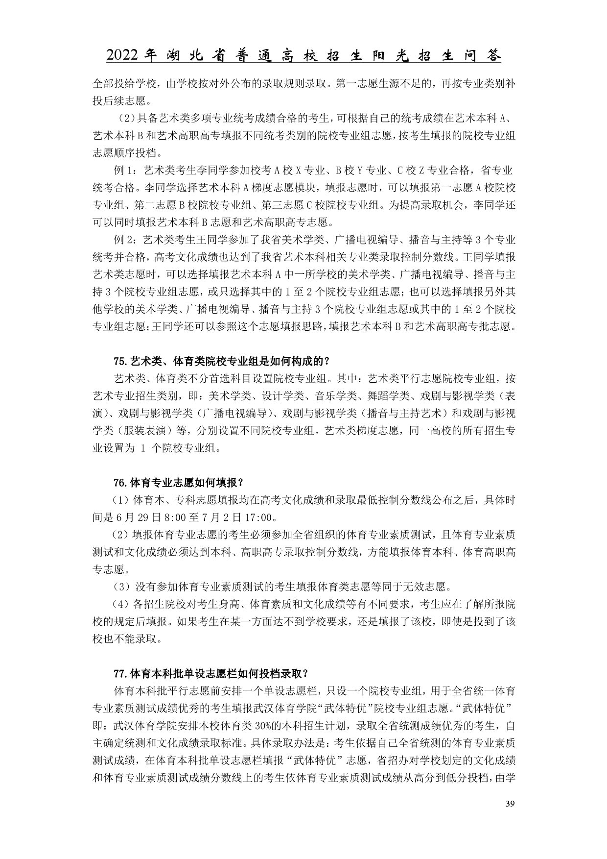 2022年湖北省普通高校招生陽(yáng)光招生問(wèn)答