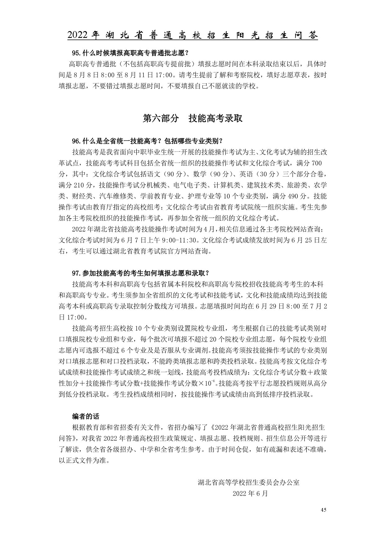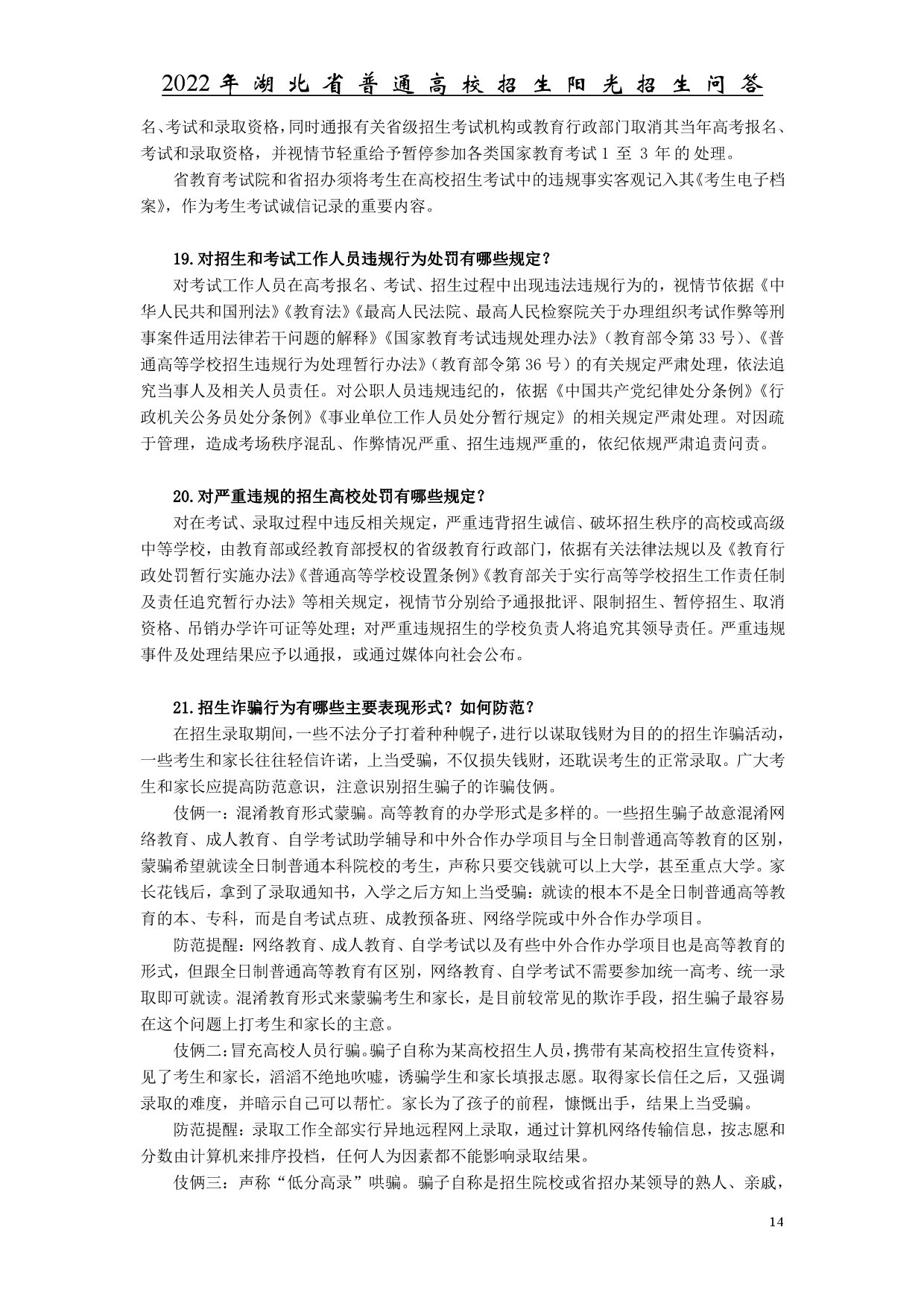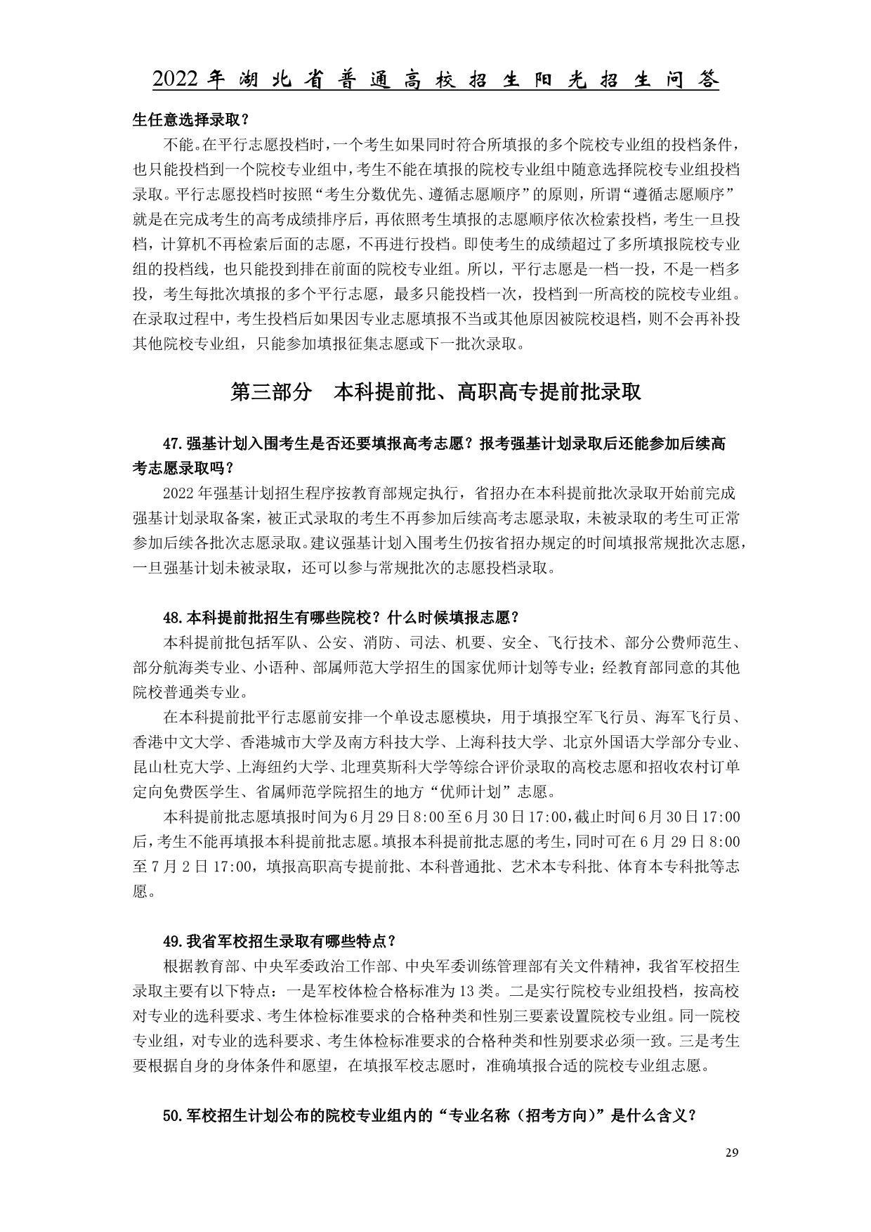 2022年湖北省普通高校招生陽(yáng)光招生問(wèn)答