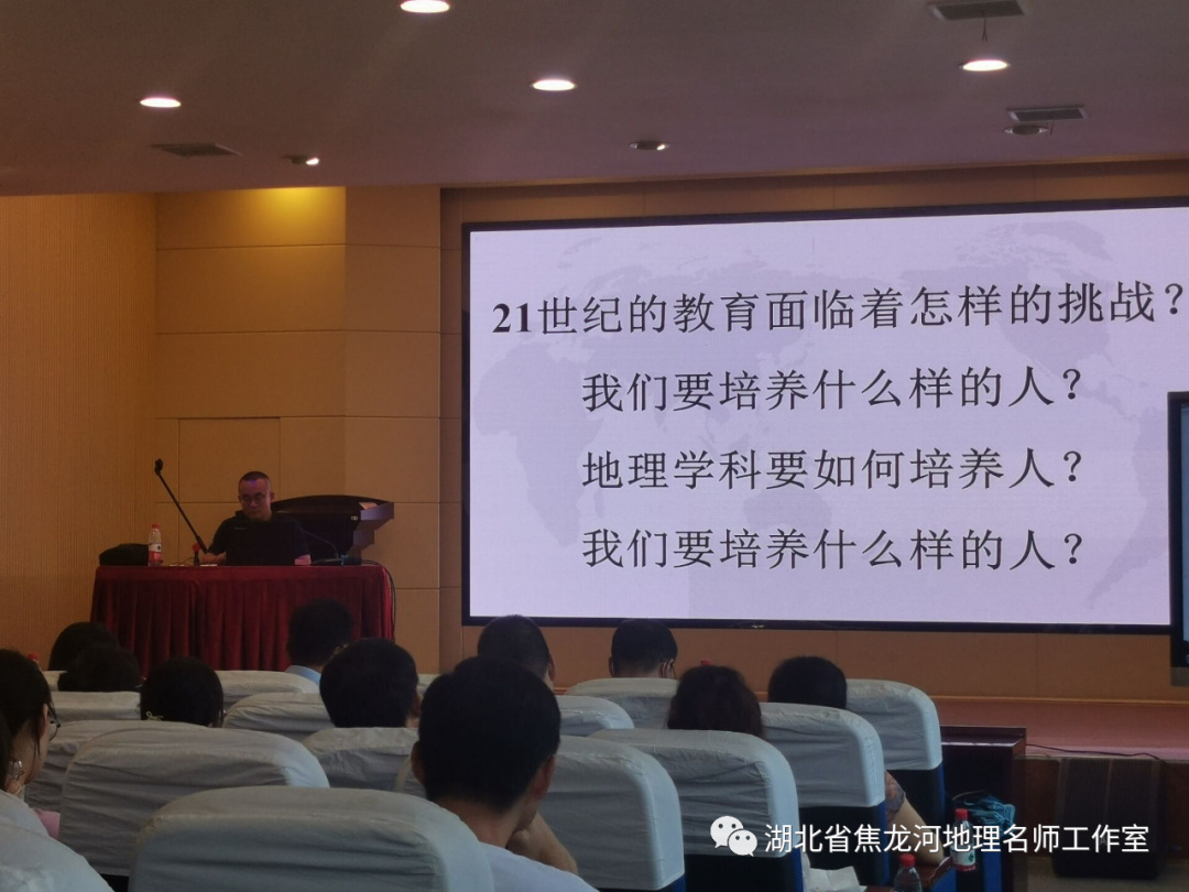 上午9點研討會正式召開,黃石七中副校長陳建首先對來參會的教師表示熱情的歡迎和感謝,對地理學(xué)科素養(yǎng)進行了語文視角的解讀。他對地理學(xué)科素養(yǎng)的四大素養(yǎng)都非常感興趣,尤其是“人地協(xié)調(diào)觀”的素養(yǎng)?!叭说貐f(xié)調(diào)觀”的素養(yǎng)指的是人們對人類與地理環(huán)境之間關(guān)系所持的正確價值觀。人地關(guān)系是地理學(xué)科最為核心的研究主題和基本的思維視角。面對人口、資源、環(huán)境、發(fā)展問題,人類社會要更好地協(xié)調(diào)好人類活動與環(huán)境的關(guān)系。這個素養(yǎng)正是黨中央提出的“立德樹人”的很好體現(xiàn),“德之大者敬畏自然”,正如中國傳統(tǒng)文化中提到的“天地有大美而不言,四時有明法而不議,萬物有成理而不說”。