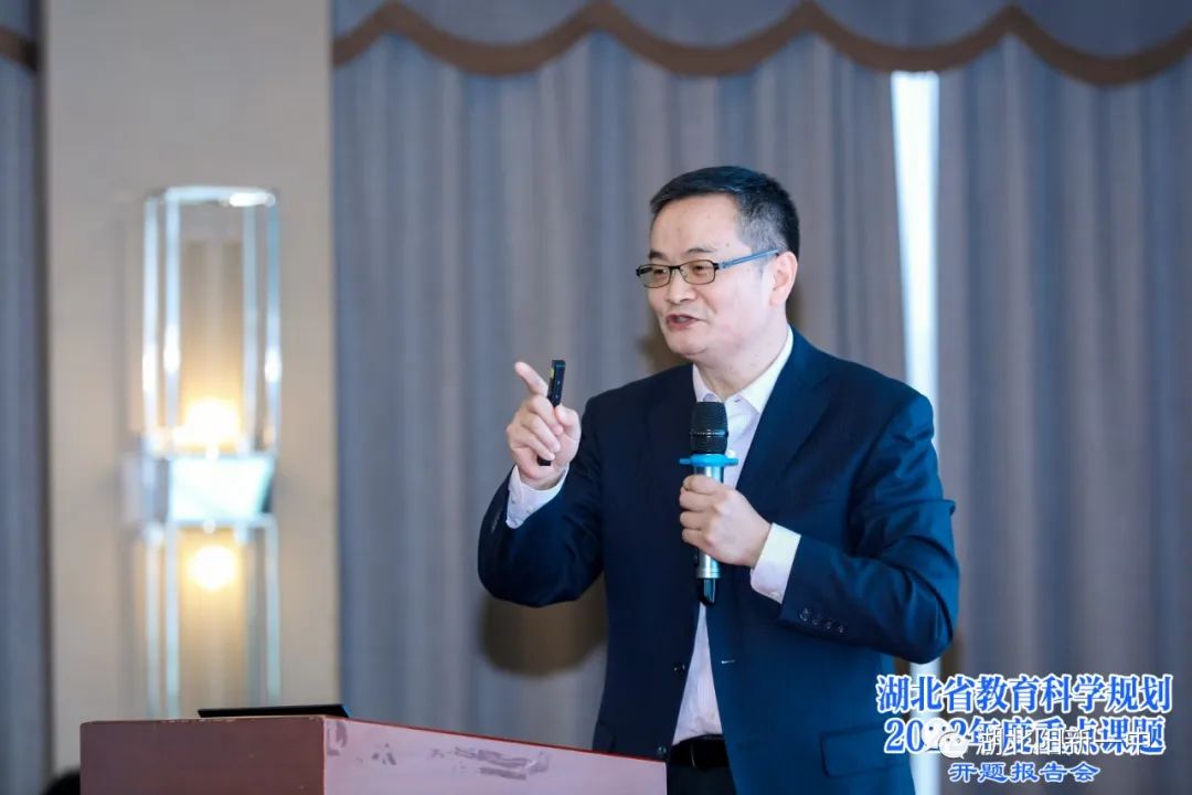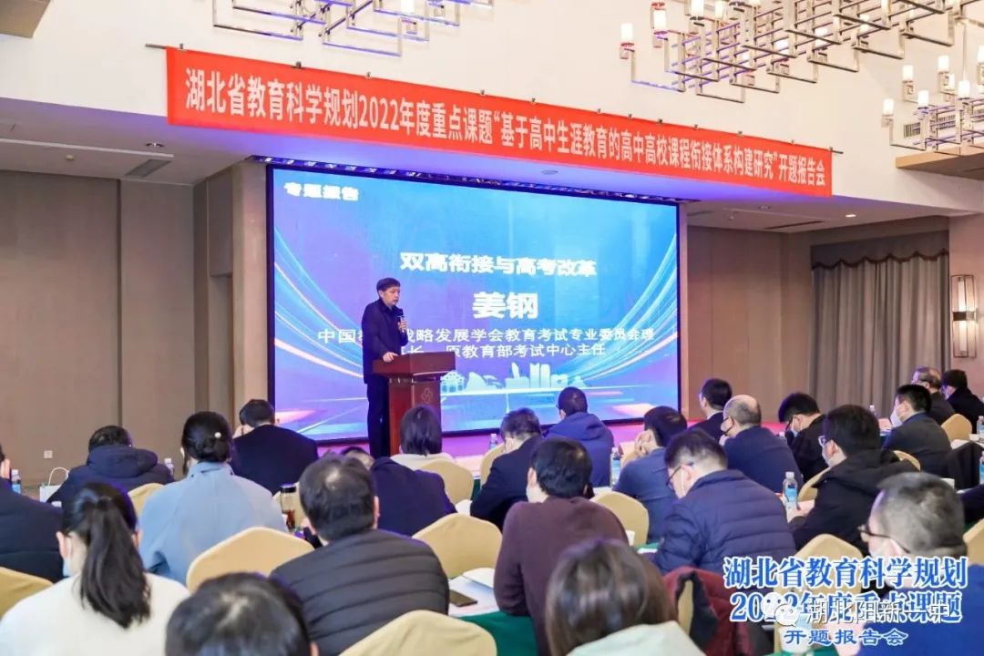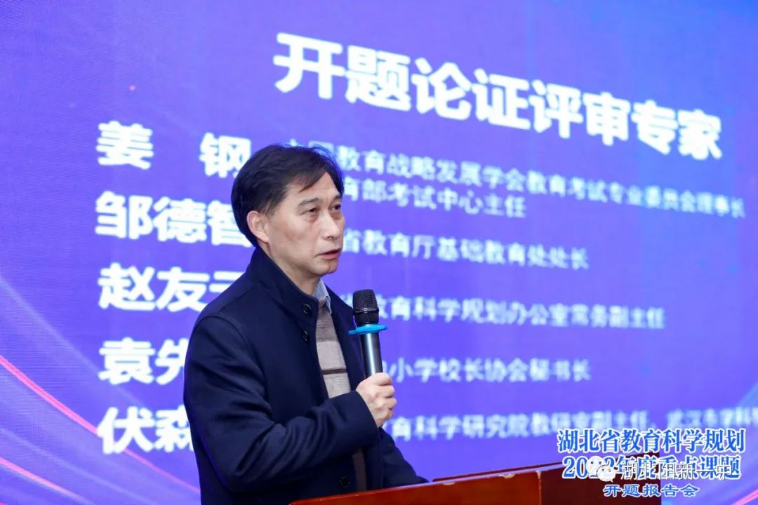 會(huì)議第一階段,由湖北省教育廳教育科學(xué)規(guī)劃辦常務(wù)副主任趙友元主持,基礎(chǔ)教育處處長鄒德智致辭,課題組負(fù)責(zé)人、華中師范大學(xué)教授胡向東作開題報(bào)告,中國教育戰(zhàn)略發(fā)展學(xué)會(huì)教育考試專業(yè)委員會(huì)理事長、原教育部考試中心主任姜鋼作專題報(bào)告《雙高銜接與高考改革》。然后,姜鋼主任、鄒德智處長、湖北省教育科學(xué)規(guī)劃辦公室常務(wù)副主任趙友元及湖北省中小學(xué)校長協(xié)會(huì)秘書長袁先瀲,武漢市教育科學(xué)研究院教研室副主任伏森泉對(duì)課題進(jìn)行開題論證評(píng)審。湖北省教育廳教育科學(xué)規(guī)劃辦常務(wù)副主任趙友元宣布湖北省教育科學(xué)規(guī)劃2022年度重點(diǎn)課題——“基于高中生涯教育的高中高校課程銜接體系構(gòu)建研究”順利開題。