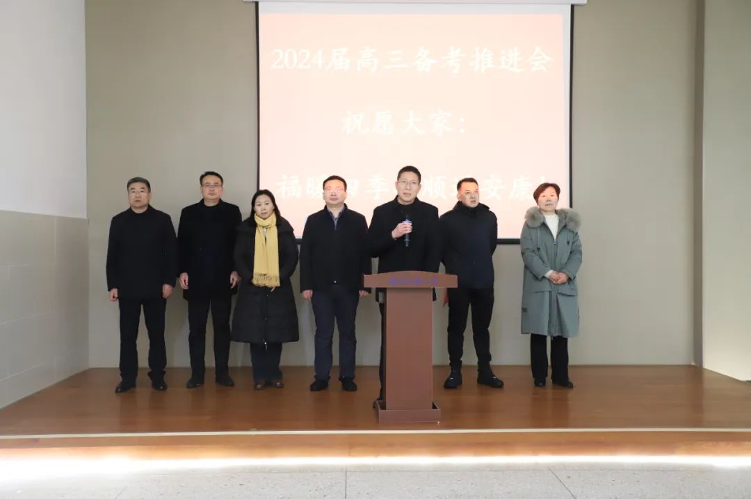 為強(qiáng)化高三備考意識(shí),實(shí)現(xiàn)高考奮斗目標(biāo),2月6日下午五點(diǎn),我校隆重召開2024屆高三高考備考推進(jìn)會(huì)。參加本次會(huì)議的有縣委副書記、政法委書記李建華,縣委常委、副縣長柯光榮,人大常委會(huì)副主任吳素貞,政協(xié)副主席劉少蘭,教育局黨組書記、局長李細(xì)祿以及教育局黨組成員、教科院相關(guān)領(lǐng)導(dǎo)等應(yīng)邀出席了此次活動(dòng)。校黨委書記明道樹及學(xué)校班子成員參加了活動(dòng)。