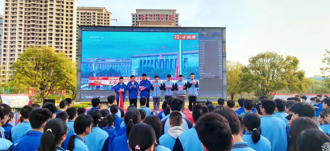 榜樣力量,朋輩領(lǐng)航。國旗下講話在莊嚴(yán)的升國旗儀式中開始,全體師生高唱國歌、行注目禮。