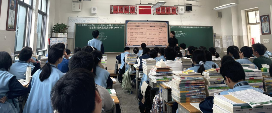 在講課環(huán)節(jié),李玲玲老師授課內(nèi)容是實驗選擇題涉及有機物的考查角度分析。李老師從教材上的有機實驗出發(fā),注重教材內(nèi)容與高考試題的銜接,強化落實課本必做實驗,充分發(fā)揮信息技術(shù)優(yōu)勢,整合常見的有機實驗操作,根據(jù)學生的實際情況靈活地、創(chuàng)造性地處理教材。教學思路清晰,過渡自然,對課堂知識的講解由點到面,同時調(diào)動學生上黑板書寫有機官能團的鑒別操作和制備原理,引導(dǎo)學生重視回歸教材,并且用讓學生默寫的方式抓知識點的落實。這種高效的教學方法,值得全組老師借鑒。