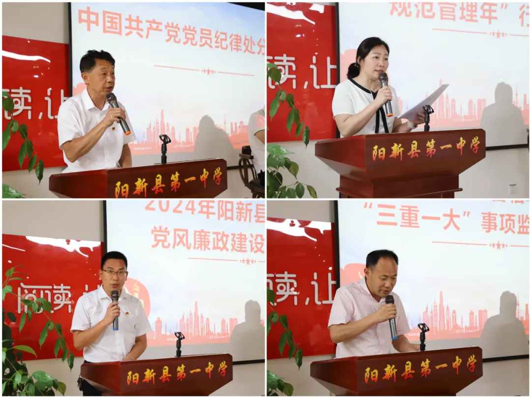 會(huì)上,集中學(xué)習(xí)了《中國共產(chǎn)黨黨員紀(jì)律處分條例》和相關(guān)文件精神。潘龍星副書記領(lǐng)學(xué)《中國共產(chǎn)黨黨員紀(jì)律處分條例》總則部分內(nèi)容;徐美姝副校長(zhǎng)領(lǐng)學(xué)教育部發(fā)布《關(guān)于開展基礎(chǔ)教育“規(guī)范管理年”行動(dòng)的通知》;王小寧書記領(lǐng)學(xué)《2024年清廉學(xué)校建設(shè)工作要點(diǎn)》;陳洪星主任領(lǐng)學(xué)《2024年陽新縣教育系統(tǒng)黨風(fēng)廉政建設(shè)工作方案》;戴征輝主任領(lǐng)學(xué)《關(guān)于被管轄單位“三重一大”事項(xiàng)監(jiān)管實(shí)施流程》。