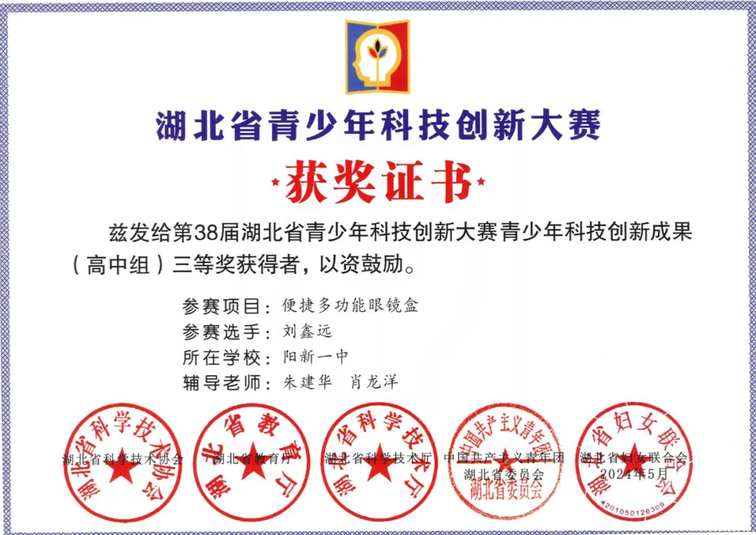 今日,從黃石市科協(xié)傳來喜報,陽新縣第一中學被評為第38屆湖北省青少年科技創(chuàng)新大賽優(yōu)秀科技教育創(chuàng)新學校。在第38屆湖北省青少年科技創(chuàng)新大賽中,陽新一中學子表現(xiàn)突出,董恩綺、全炫羽、柯天棋同學的科技成果《減震自穩(wěn)式爬梯垃圾桶》獲高中組省二等獎;樂志恒同學的科技成果《基于傳感器原理和AI技術而改進的智能電飯煲》獲高中組省二等獎;劉鑫遠同學的科技成果《便捷多功能眼鏡盒》獲高中組省三等獎。