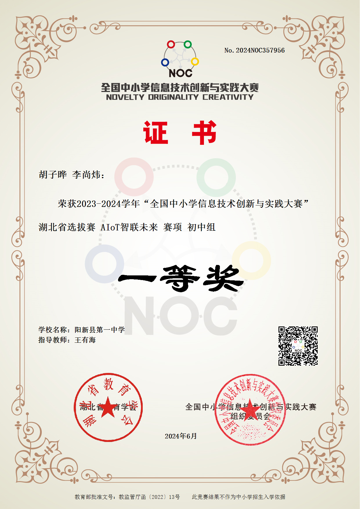 我校學(xué)子在2023-2024學(xué)年全國中小學(xué)信息技術(shù)創(chuàng)新與實(shí)踐大賽(簡(jiǎn)稱NOC大賽)湖北省選拔賽中喜獲佳績!