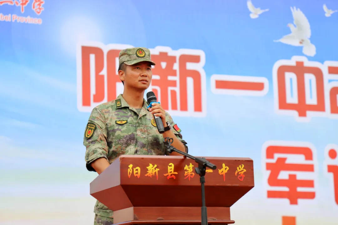 榜樣引領,樹立典型。優(yōu)秀教官羅文俊作代表發(fā)言,他認為在短暫而又充實的七天軍訓里,一中學子展現(xiàn)出了堅韌不拔的毅力、頑強拼搏的精神和高度的紀律性,讓教官們印象深刻、贊不絕口。并祝愿同學們在今后的日子里,學業(yè)有成、前程似錦!