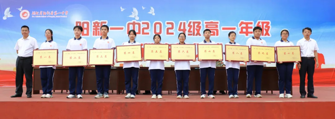 學生發(fā)展中心肖鵬主任宣讀軍訓優(yōu)勝班級表揚名單,高一年級主任董才振宣讀軍訓優(yōu)勝學子表揚名單,高一年級副主任饒雄宣讀暑期居家學習優(yōu)勝名單,黨委書記方長風和校委會全體成員為獲獎個人和團隊頒獎。